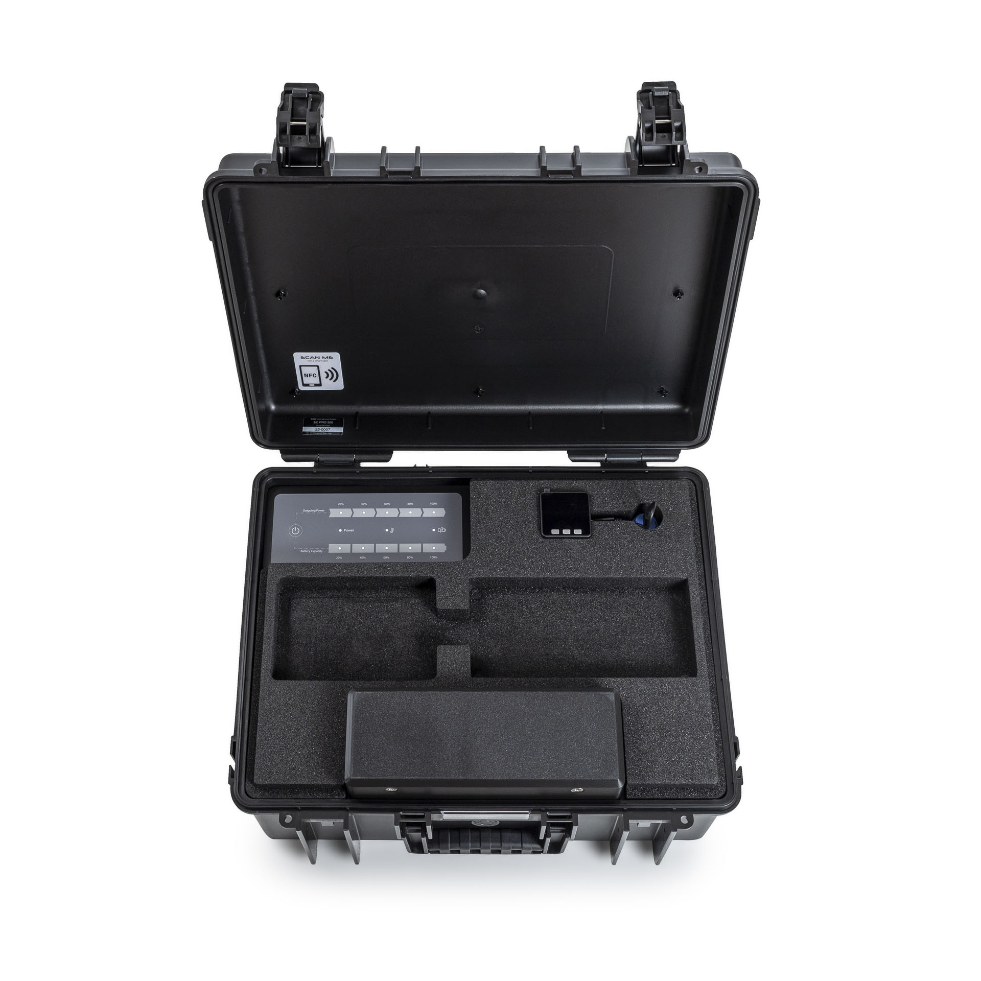 - Platz im Deckelschaum für zwei Ladegeräte und das Fernbedienungsdisplay (nur für interne Tastatur)